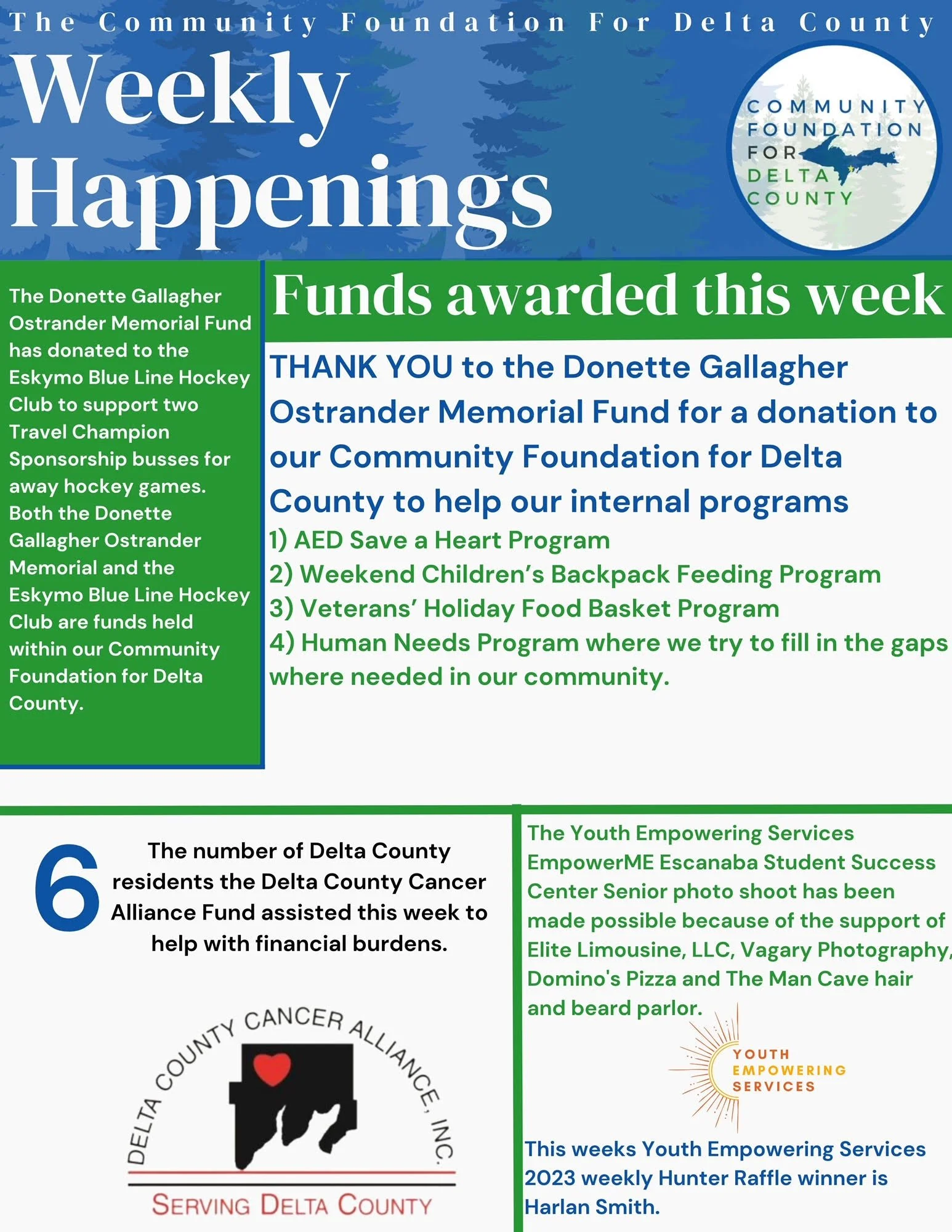 If you would like to know more about how to give back to Delta County visit the CFUP web site at : www.givedeltacounty.org