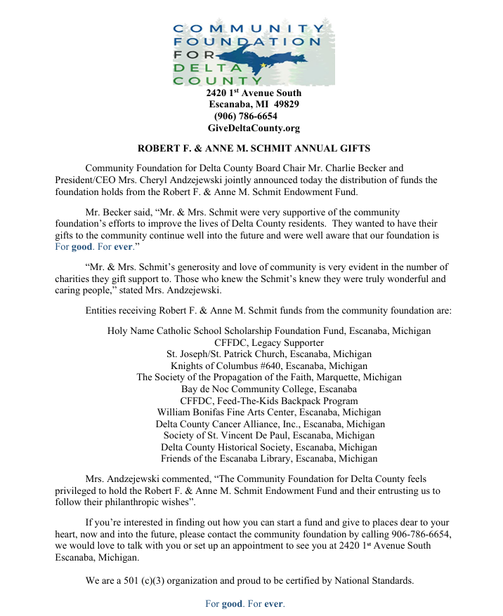 Guest User April 28, 2026 Robert F. and Anne M. Schmit Endowment Fund Distributes Annual Gifts Guest User April 28, 2026